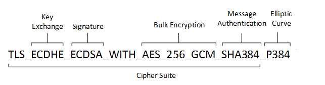 - Authentication Algorithm: To ensure the correct and secure transfer of data, a web server needs to verify the identity of the user who is receiving the data. Usually, this process involves the user inputting a set of credentials including a username and password. To facilitate this authentication process, cipher suites employ an authentication algorithm such as RSA, DSA and ECDSA.